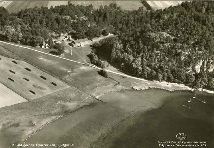 Enligt Bengt Lundins noteringar: "KFUM-gården Sparreviken, Ljungskile. Flygfoto".