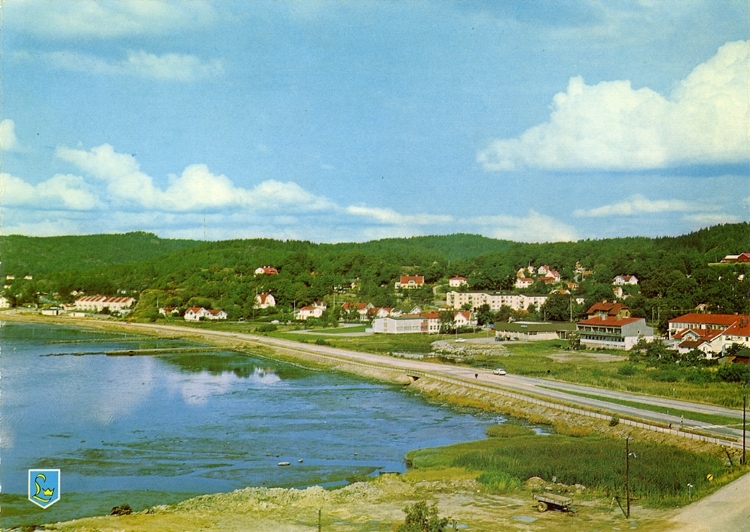Enligt Bengt Lundins noteringar: "Vy över Ljungskile. Södra infarten med nya vägen".