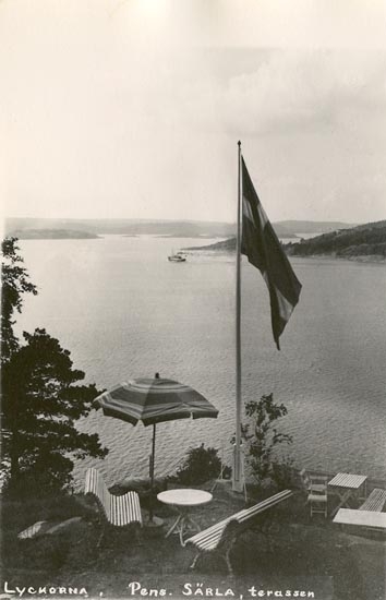 Titel: Enligt Bengt Lundins noteringar: "Utsikt från Särla Pensionat. Lyckorna. Terassen".