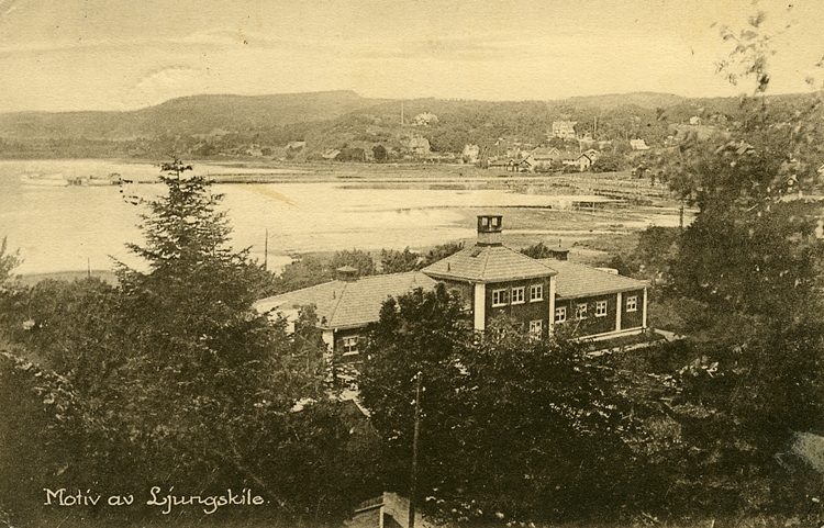 Enligt Bengt Lundins noteringar: "Motiv av Ljungskile. Badhuset och Linnea".