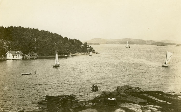 Enligt Bengt Lundins noteringar: "Stillingsön. Utsikt mot badhuset och fjorden"