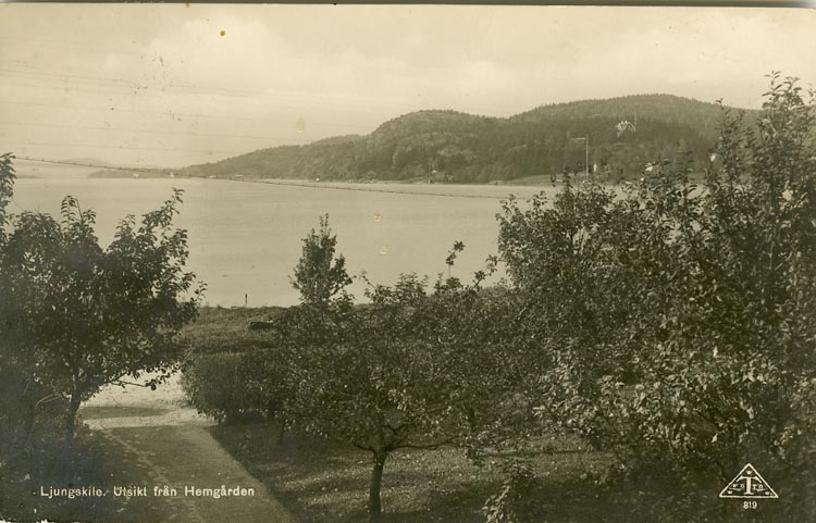 Enligt Bengt Lundins noteringar: "Utsikt från Hemgården. Mot havet. Ljungskile".