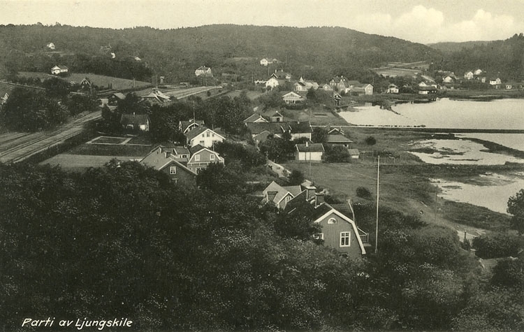 Enligt Bengt Lundins noteringar: "Parti av Ljungskile. Från Vällerödsberget".