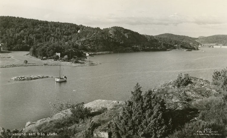 Enligt Bengt Lundins noteringar: "Ulvesund sett från Ulvön. Båten "Sylvia".