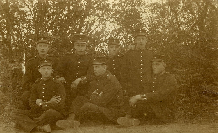 Enligt Bengt Lundins noteringar: "Kalle Larsson med sex kamrater vid skogen".