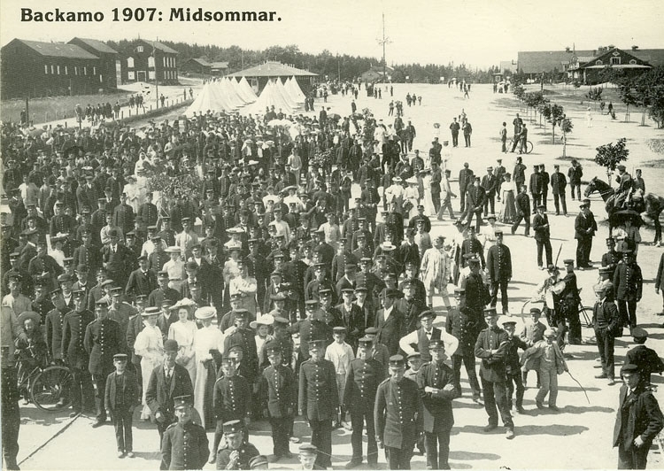 Enligt Bengt Lundins noteringar: "Backamo. Midsommar 1906. Karnevalståg med utländska gäster".