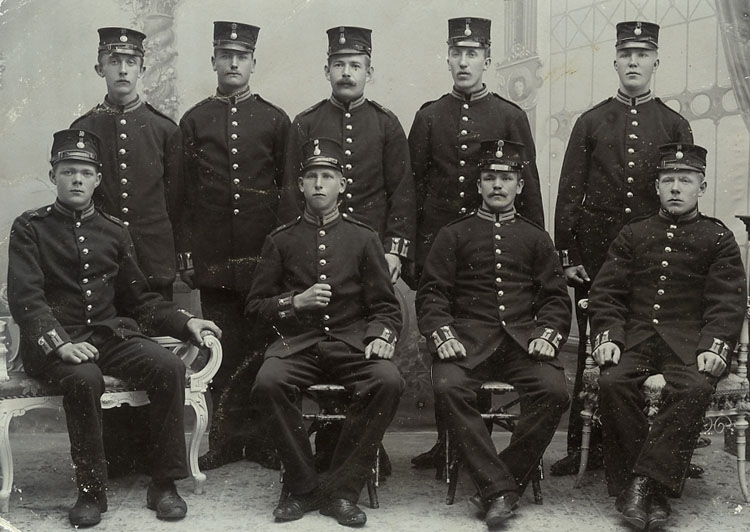 Enligt Bengt Lundins noteringar: "Ateljefoto av nio man".