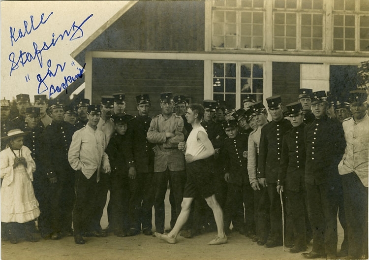 Enligt Bengt Lundins noteringar: "Kalle Stafsing demonstrerar gångsport".
