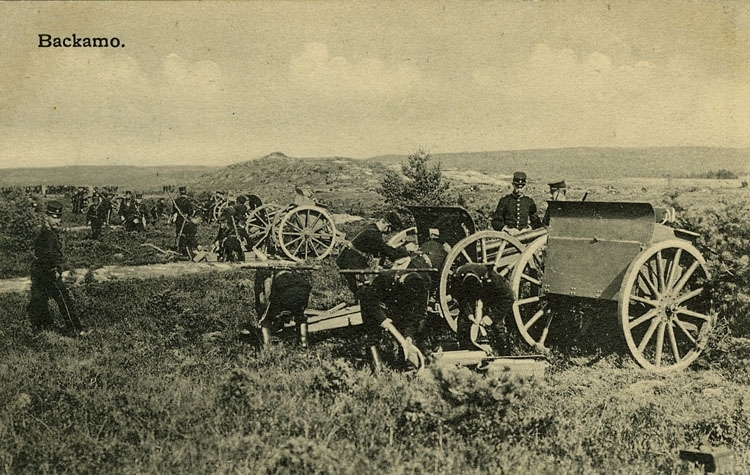 Enligt Bengt Lundins noteringar: "Artilleriövning på Hea. I bakgrunden "Väktarhöjden".