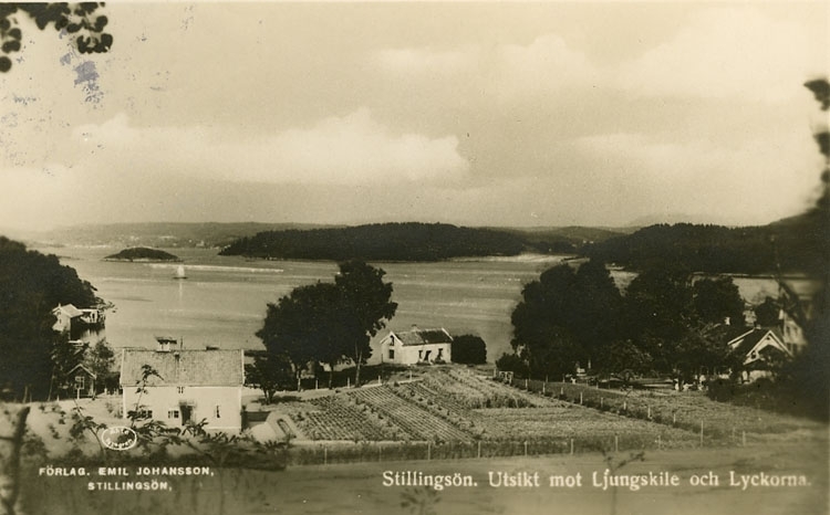 Enligt Bengt Lundins noteringar: "Stillingsön. Utsikt mot Ljungskile och Lyckorna".