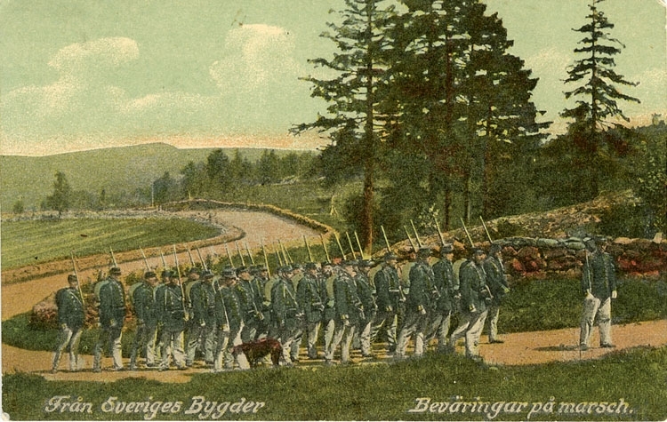 Enligt Bengt Lundins noteringar: "Från Sveriges bygder. Beväringar på marsch".