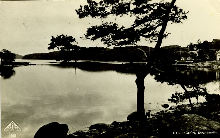 Enligt Bengt Lundins noteringar: "Stillingsön. Strandmotiv med ensan tall".