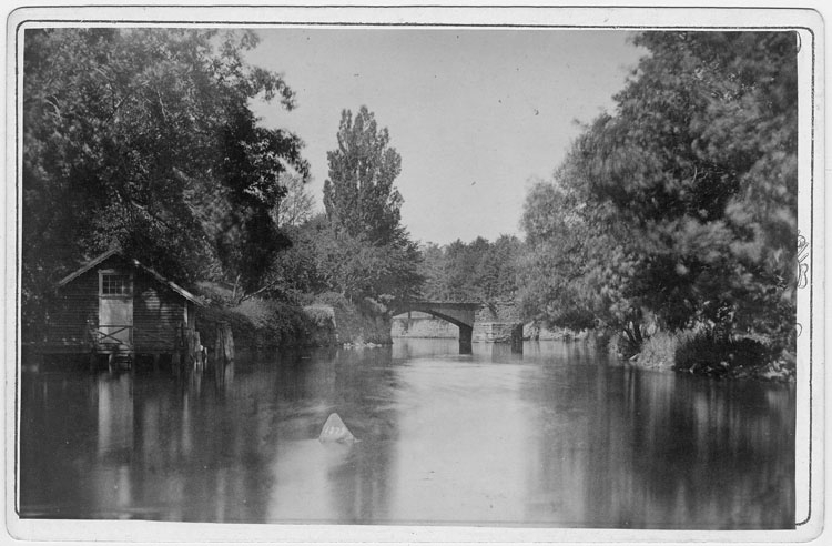 Enligt text skrivet på kopian: "Bäveån vid Hasselbacken, Uddevalla, omkr. 1880".