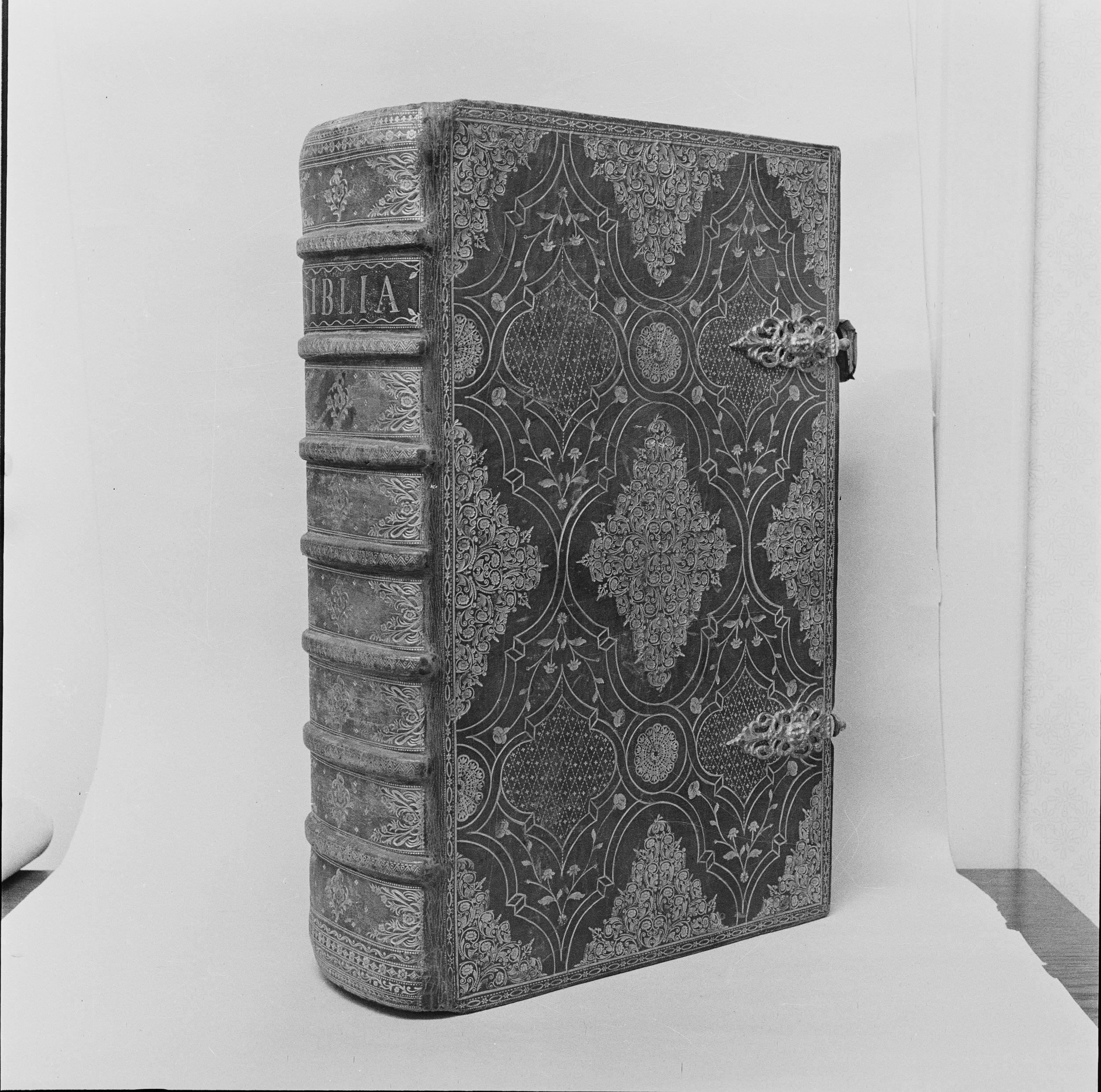 Det s.k. Gezeliusska bibelverket, rokokoband i gyllenläderstil. Gåva av P.O. Unander 1786.