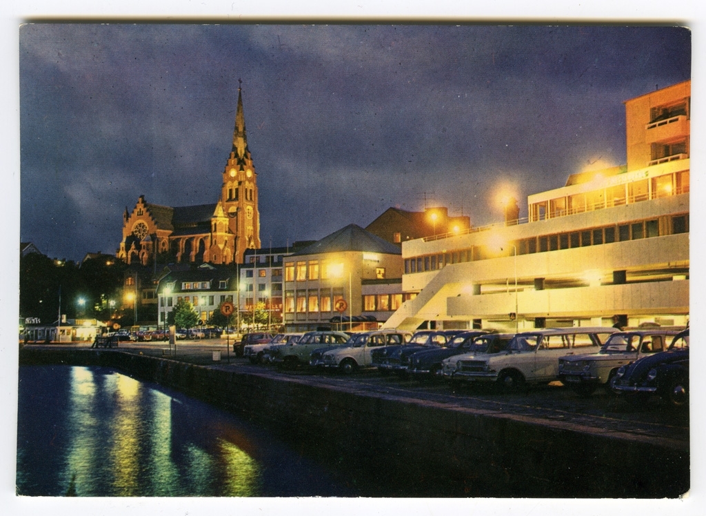 Text på kortet: "Skymning över Lysekils södra hamn".