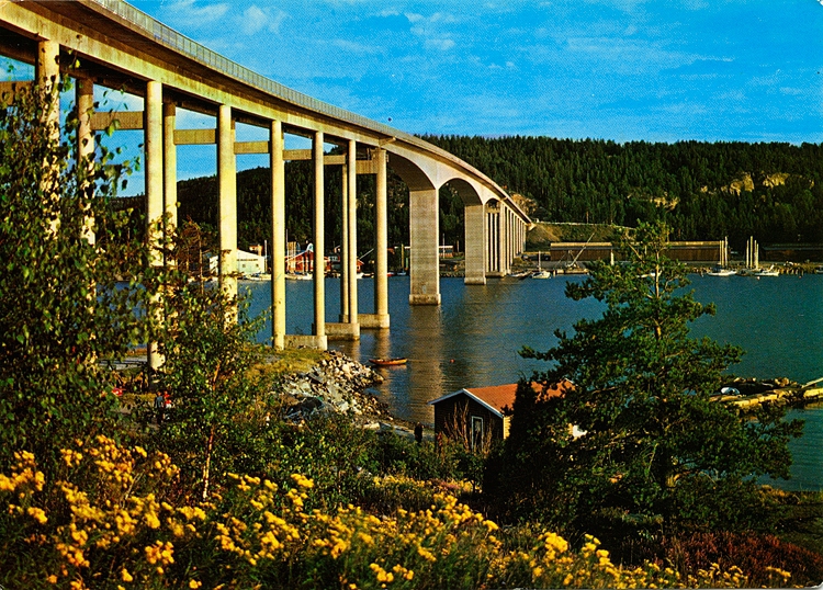 Text på vykortet: Nötesundsbron från fastlandet med Orust i bakgrunden.