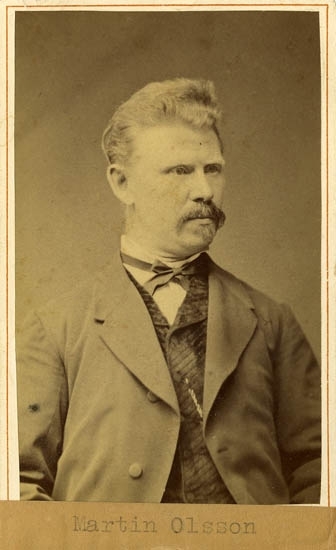 Titel: Text på kortets baksida: "Skomakarmästaren Martin Olsson, född 1827".