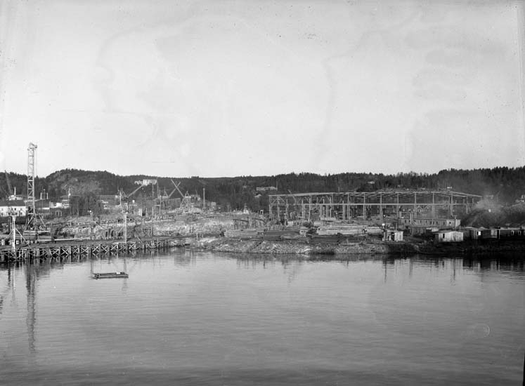 Svetshall och fartygsbädd under uppbyggnad, Sörvik.