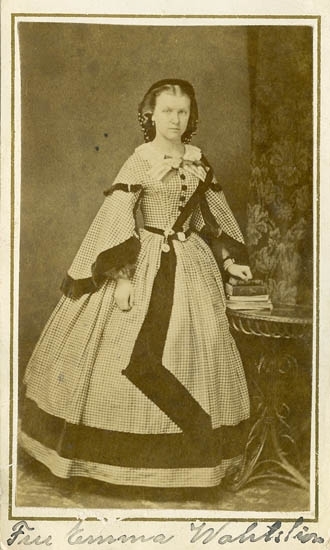 Text på kortets baksida: "Fru Emma Wahlström, f. Hjerne".
