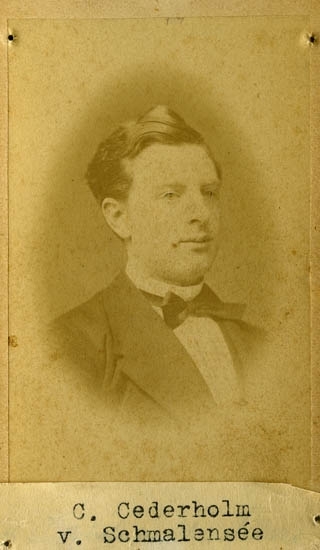 Text på kortets baksida: "Ingeniör Curt Cederholm von Schmalensée. Son till Postdirektör C. v. S".