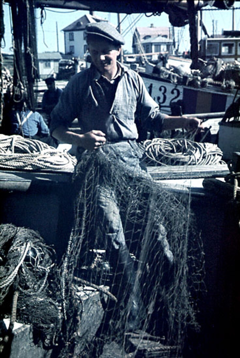 Hamnen, GG 132 "Nomy" skymtar bakom Gunnar Karlsson, ombord på GG394 Berit från Öckerö.