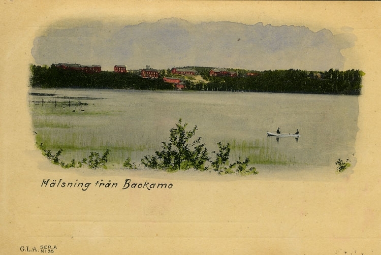 Enligt Bengt Lundins noteringar: "Lägerplatsen sedd från Rinnan. Hälsning från Backamo".