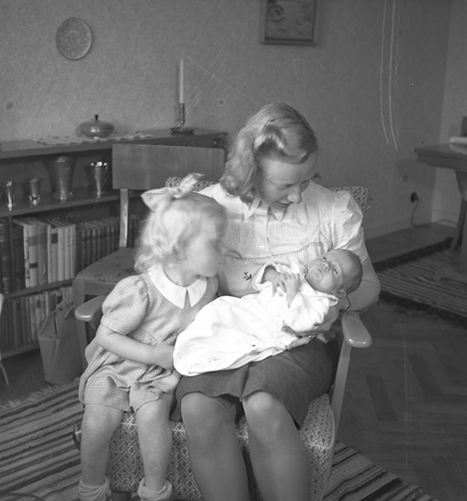 Text till bilden: "Ingrid Olsson m. 2 barn. 1946 maj".