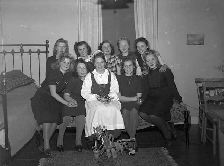 Text till bilden:"Gruppfoto. Damer. Interiör".