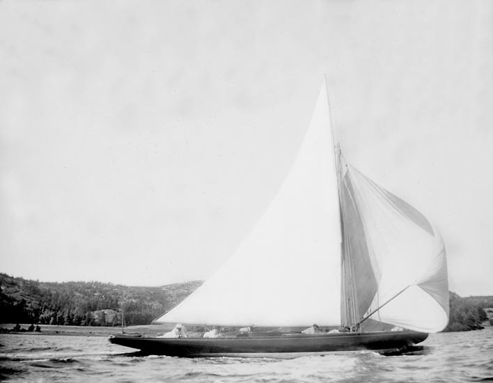 Enligt fotografens noteringar: "Kappseglingsbåt ."