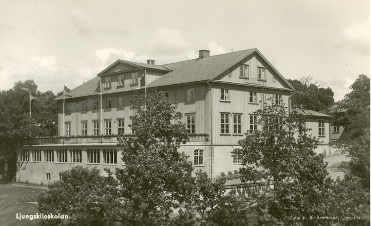 Enligt Bengt Lundins noteringar: "Västkustens Ungdomsskola. Huvudbyggnaden. Ljungskile".