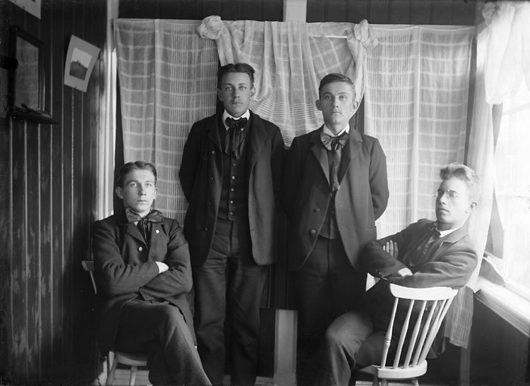 Enligt noteringar: "Fyra herrar i Färdigs ateljé. Sittande till vänster Otto Sohlberg." (BJ)