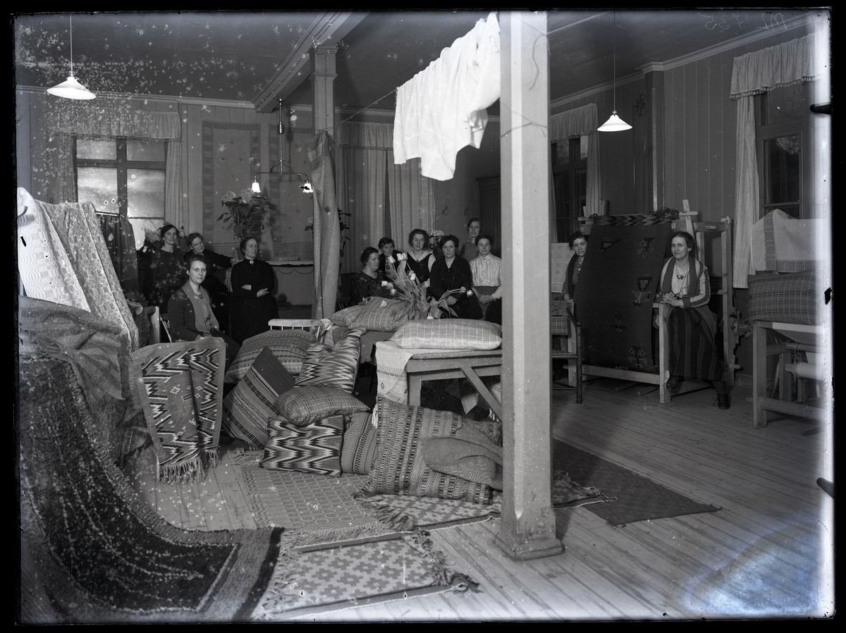 Enligt tidigare notering: "Interiör, vävskola. Utställning av textilier"