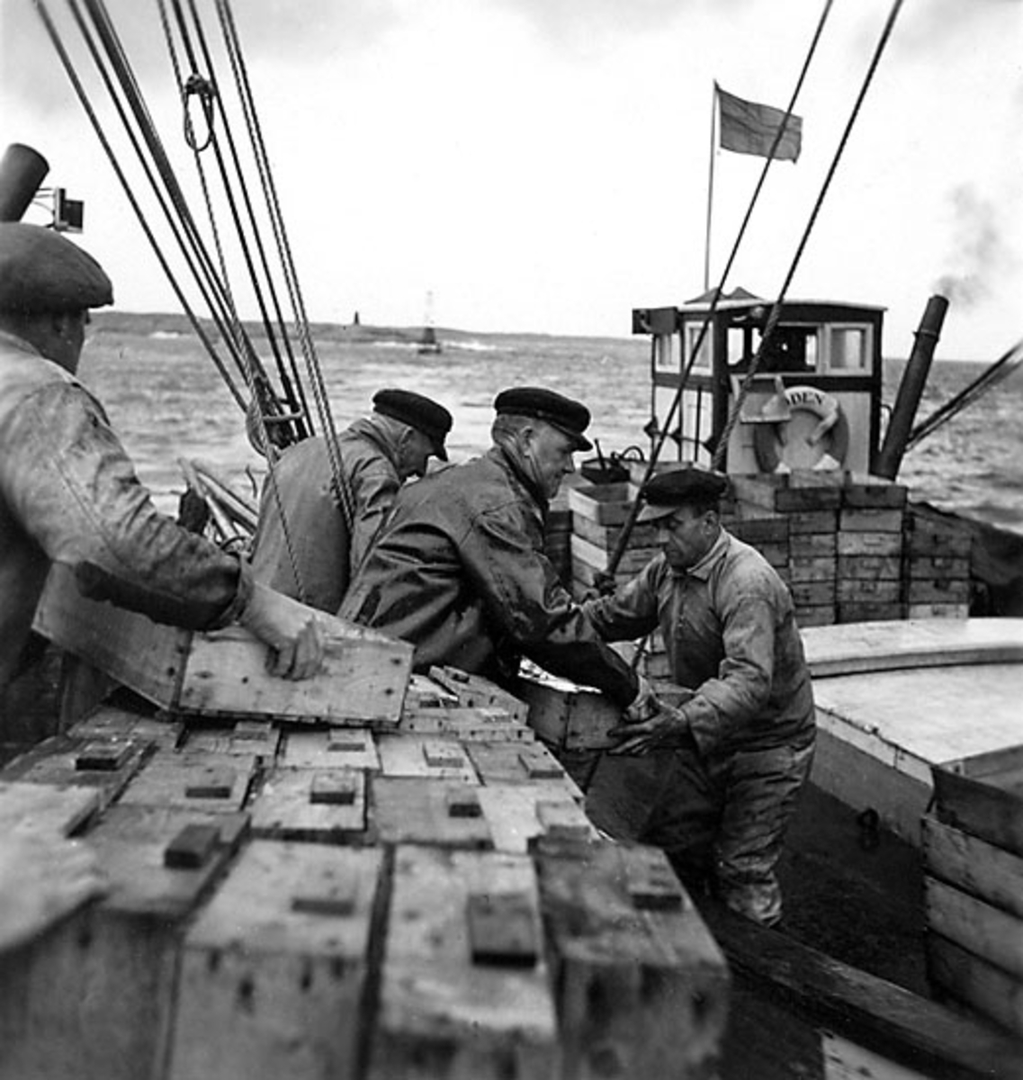 Lasten tas ombord i "följaren", Oden - Gravarne, för snabb transport till fabriken.
