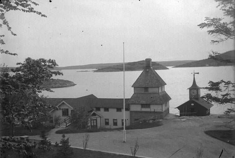 Enligt Bengt Lundins noteringar: "Kamrerarkontoret och varmbadhuset. Vykort TF BL 319".