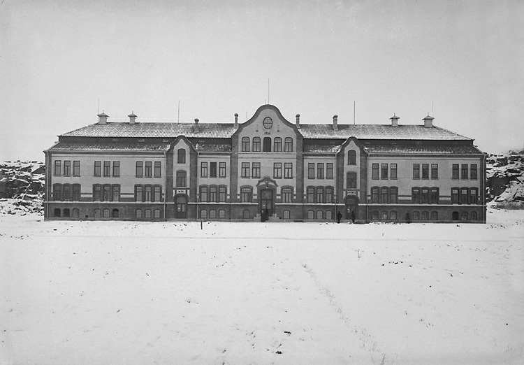 Enligt tidigare notering: "Vinterbild. Gamla ålderdomshemmet, fasaden åt söder."