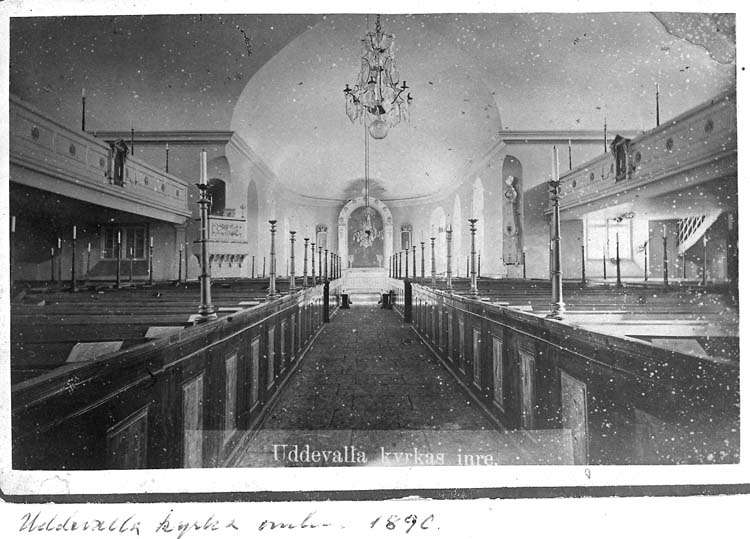Text på kortet: "Uddevalla kyrka omkr. 1890. Uddevallas kyrkas inrre".