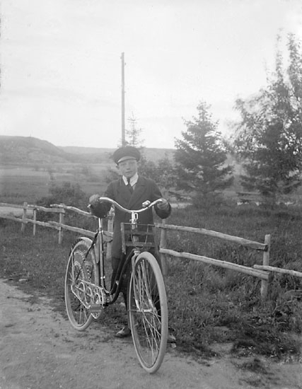 Enligt notering: "Ung man med damcykel".