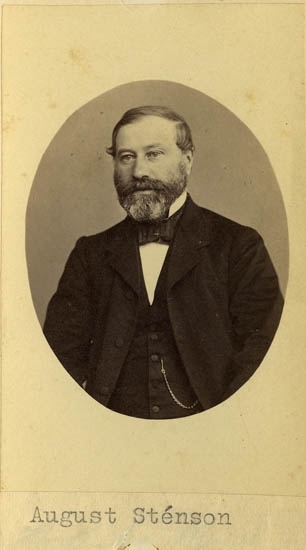 Text på kortets baksida: "Handlanden August Sténson, f. 1818, d. 1886".