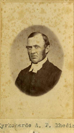 Text på kortets baksida: "Kyrkoherde o Prosten Peter Andreas Rhedin, f. 1827 Kyrkoherde i Bokenäs 1868".