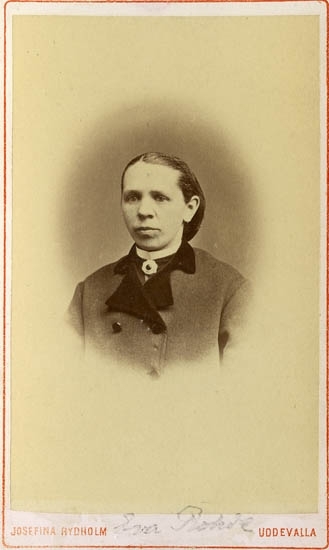"Lärarinnan Eva Rodhe Göteborg. f. 1836" lyder text på kortets baksida