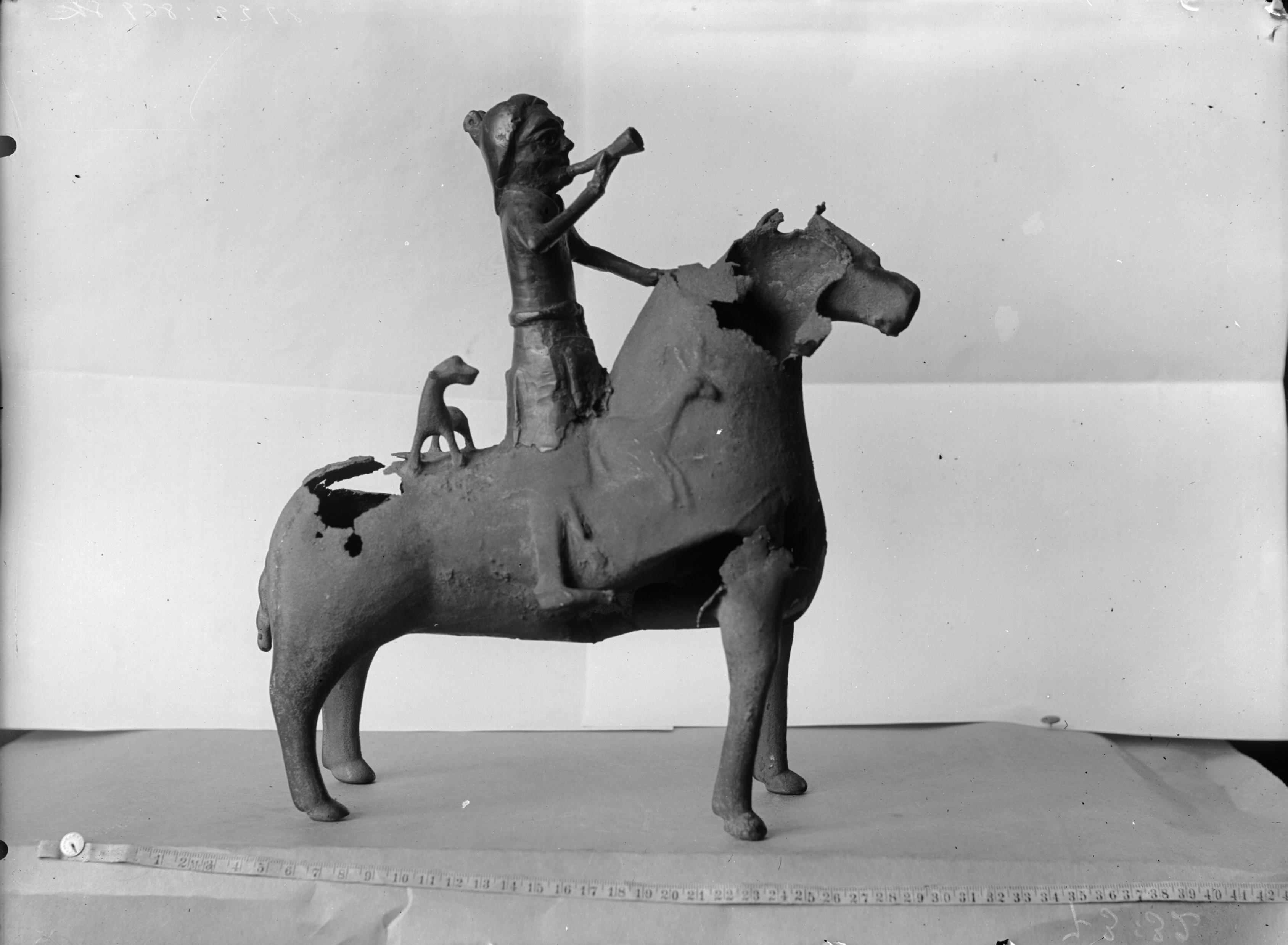 Ryttare till häst, funnen under plöjning på en åker i Västraby, Högseröd socken.
