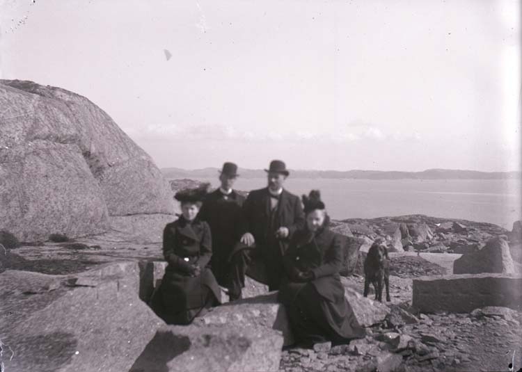 Enligt text som medföljde bilden: "Fru Sjöstam, Eva Carlsson, Bryggm. Sjöstam o. Hjalmar 6/4 1902 Lysekil."
