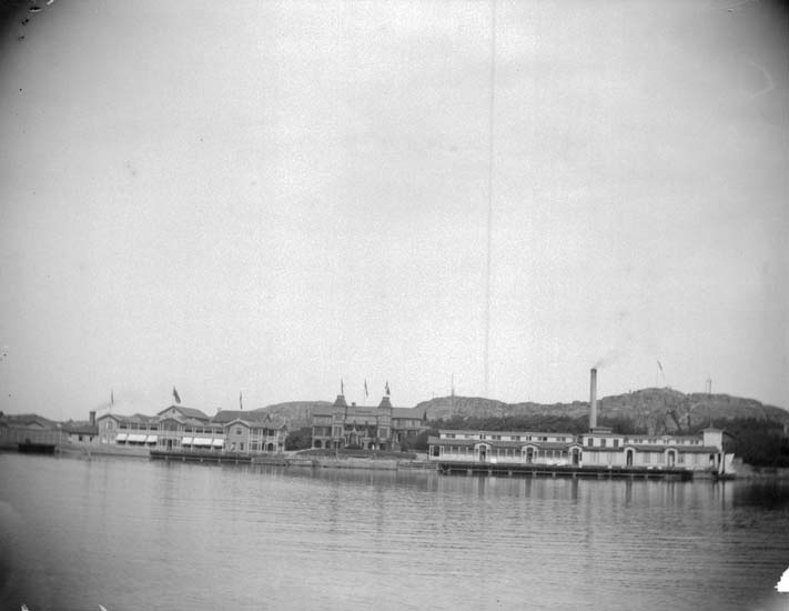 Enligt text som medföljde bilden: "Lysekil. Badinrättningen från sjön 26/6 1898".