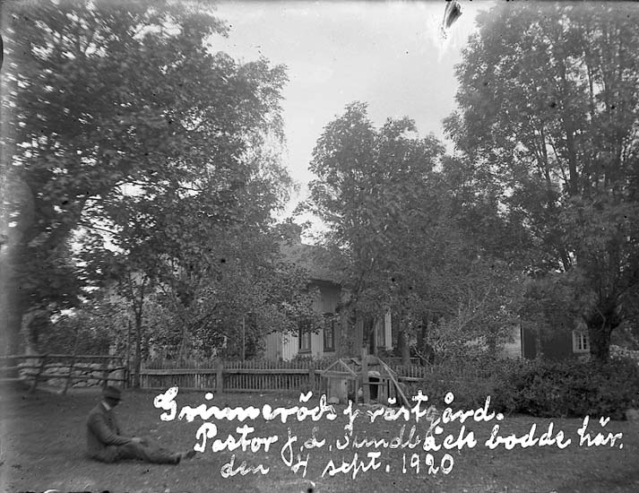 Enligt text på fotot: "Grinneröds prästgård. Pastor J L Sundbäck bodde här, den 4 sept. 1920".