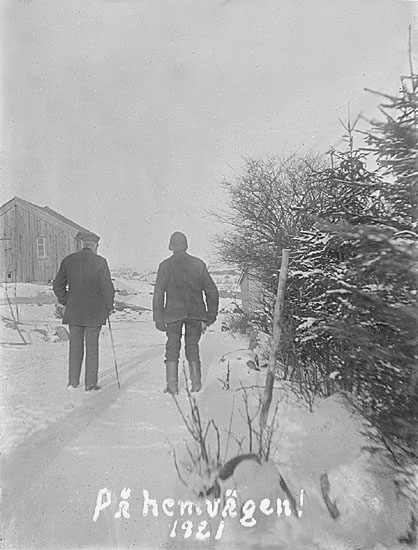 Enligt noteringar: "På hemvägen. Johannes A. och skräddaren Karl Krok".