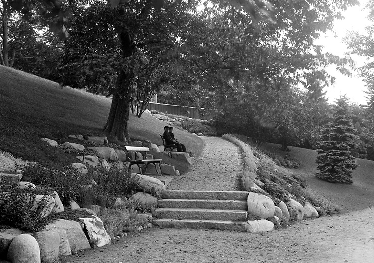 Enligt tidigare notering: "Från Hasselbacken, del av parken med gångväg och trappa."