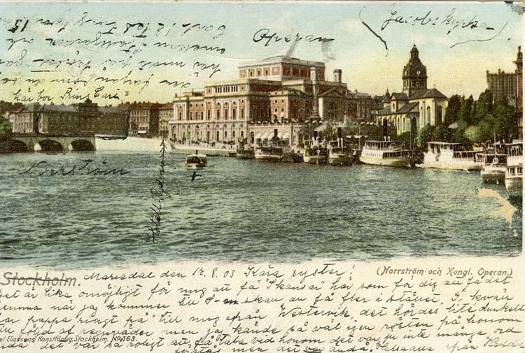 Notering på kortet: Stockholm. Norrström och Kungl. Operan.