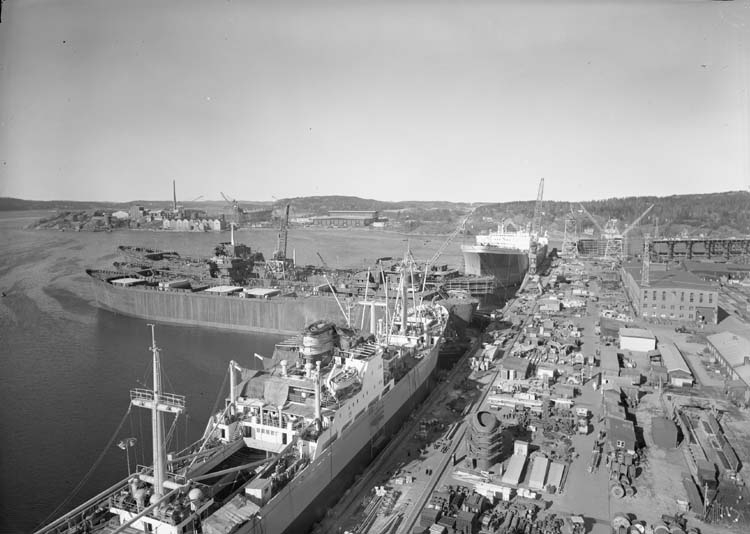 Översiktsbild kaj, pir, och fartyg bl.a. Burl S. Watson.