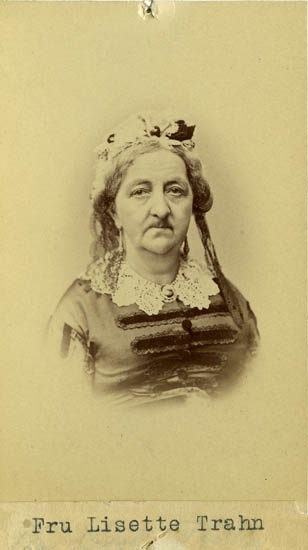 Text på kortets baksida: "Fru Lisette Trahn från Hamburg. Gift med med Jacob Trahn".