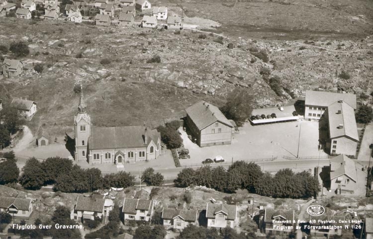 Tryckt text på kortet: "Flygfoto över Gravarne".
